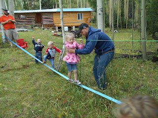 We had lots of fun at the Holyoak family reunion this year. There was good food, family time, and fun games. This web crossing was a big hit, even Dad got in on the action.